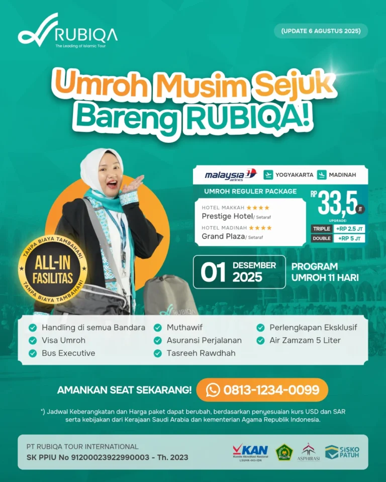 Paket Umroh Bareng RUBIQA | Umroh Keberangkatan 01 Desember 2025