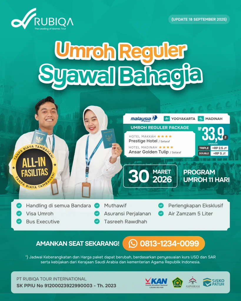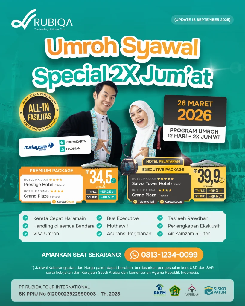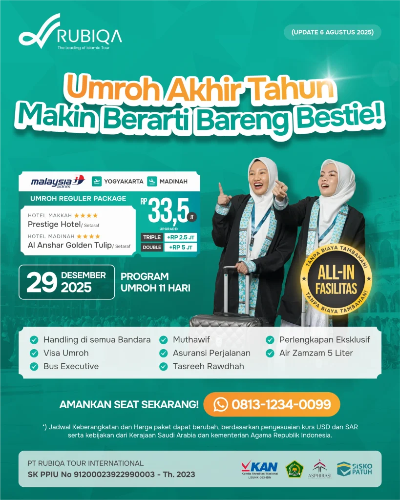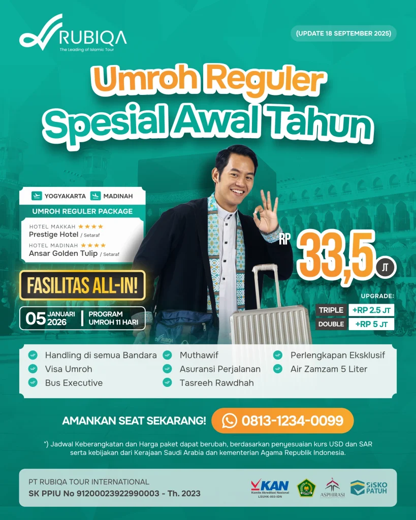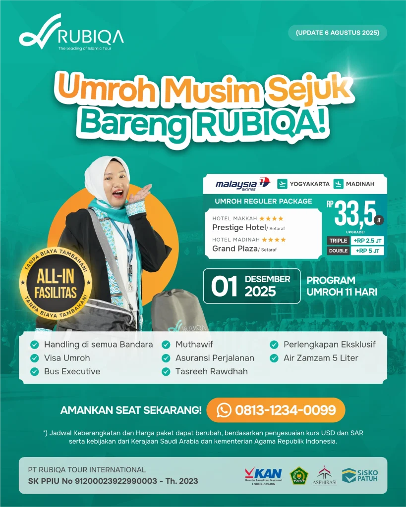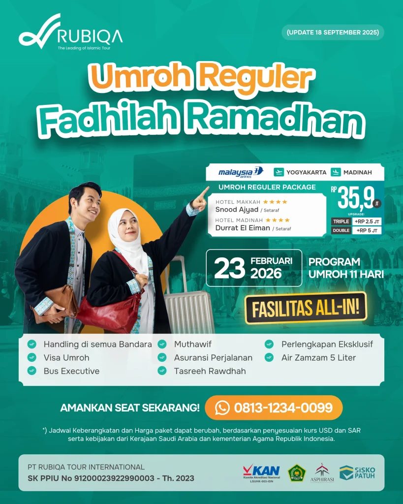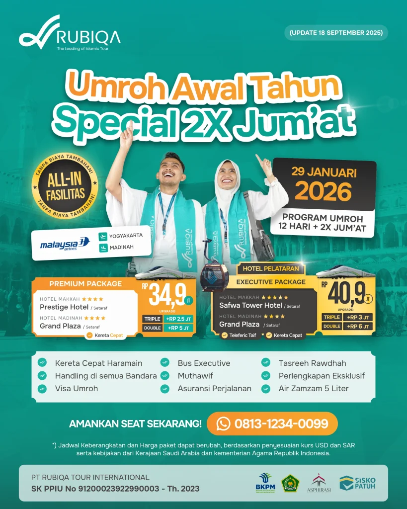 Pelayanan dan fasilitas premium ala sulthan dengan harga persahabatan. Wujudkan pengalaman umroh terbaik anda bersama Rubiqa.